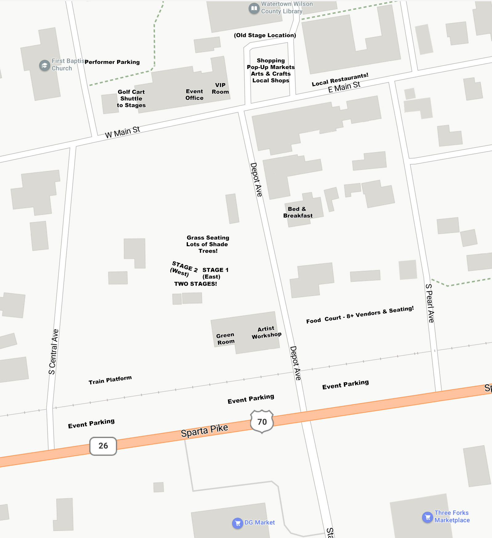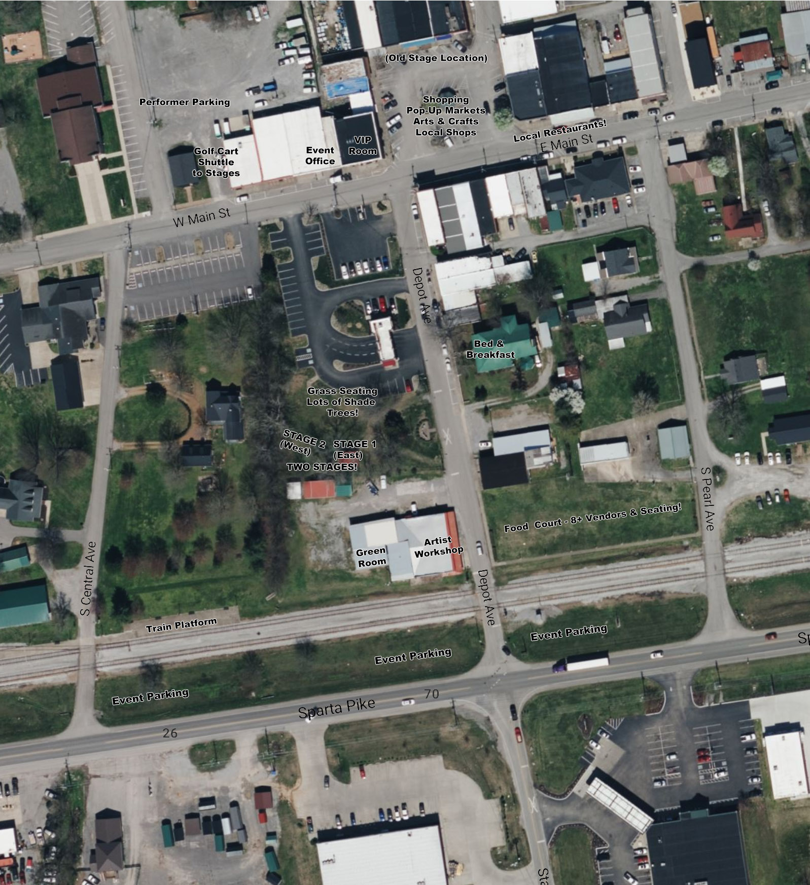 If you would like to take advantage of the "festival" atmosphere we'd love to have you join us!  In addition to the music fans the Tennessee Central Railway also brings approximately 500 visitors from Nashville!